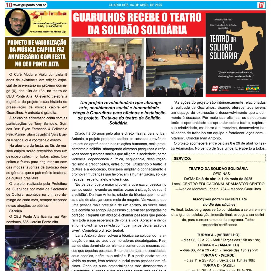 Em comemoração aos 30 anos do Teatro da Solidão Solidária, será lançado um livro bilíngue (português/francês) com memórias, registros fotográficos, entrevistas e relatos emocionantes de quem construiu essa trajetória. A obra será também um instrumento de diálogo internacional sobre arte, direitos humanos e solidariedade.