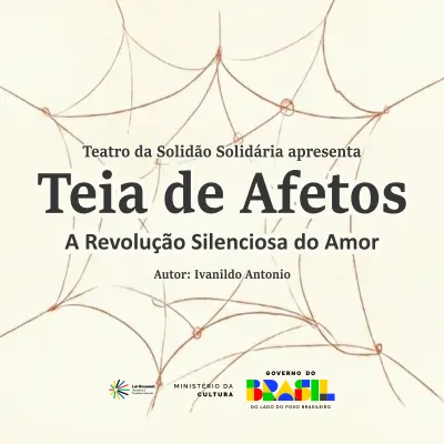 “TEIA DE AFETOS – A Revolução Silenciosa do Amor” é um projeto sociocultural itinerante, baseado na metodologia do Teatro da Solidão Solidária, que atua como ferramenta de escuta, empatia e transformação social por meio da arte, da mediação de conflitos e da inclusão.