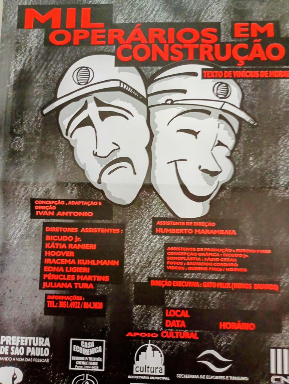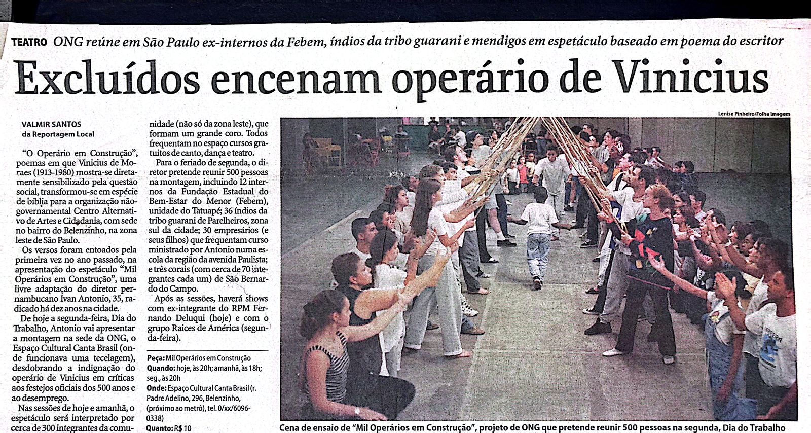 O elenco é formado por garis, empresários, atores profissionais, estudantes, entre outros, e a idade dos integrantes varia de seis a 62 anos. Os atores foram selecionados por meio de oficinas teatrais realizadas pelo Espaço Cultural Livre. Cerca de dez diretores deram aulas de teatro sob o olhar de diferentes dramaturgos: Antonin Artaud, Bertolt Brecht, entre outros.